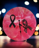 8″ wood round with purple and green swirls, covered in protective epoxy resin.