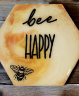 Upcycled 12″ LP vinyl record with a dark blue background and a wispy web of lightning, covered in protective epoxy resin.