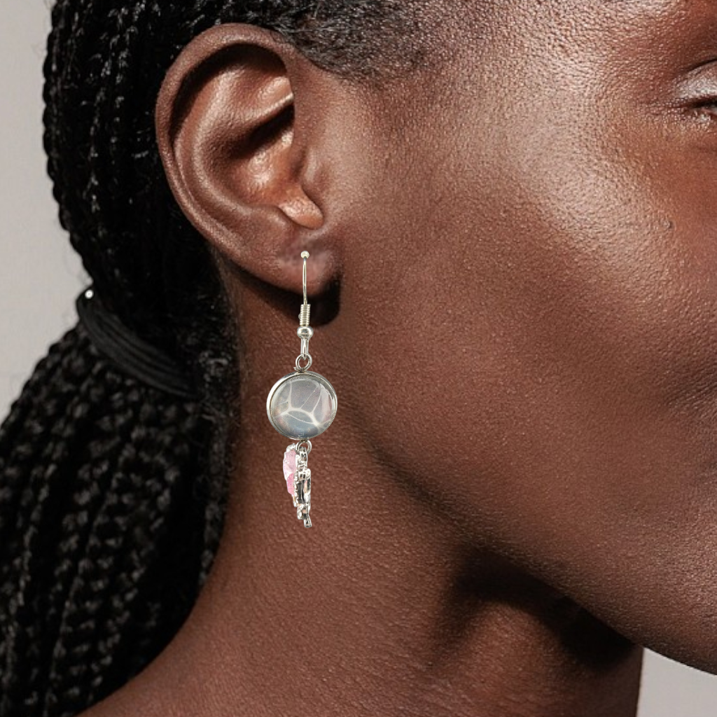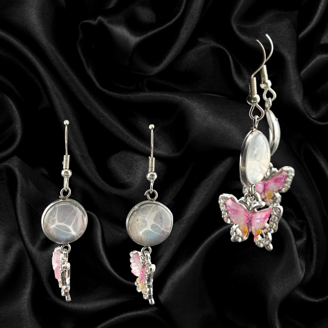 12mm Abstract Glass & Butterfly Charm Earrings-B