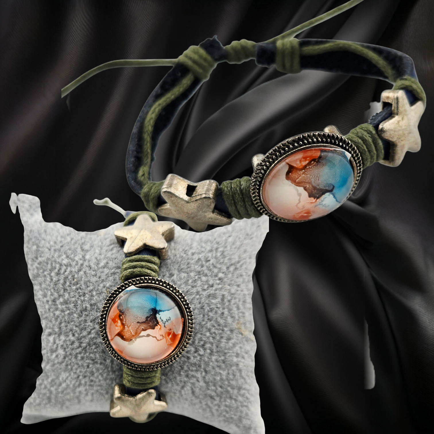 This adjustable leather bracelet blue pink – star band – is handmade with care and a playful, boho-inspired spirit. Each piece is crafted to feel whimsical and artsy. Only one available. 6.7"-8.3" length.