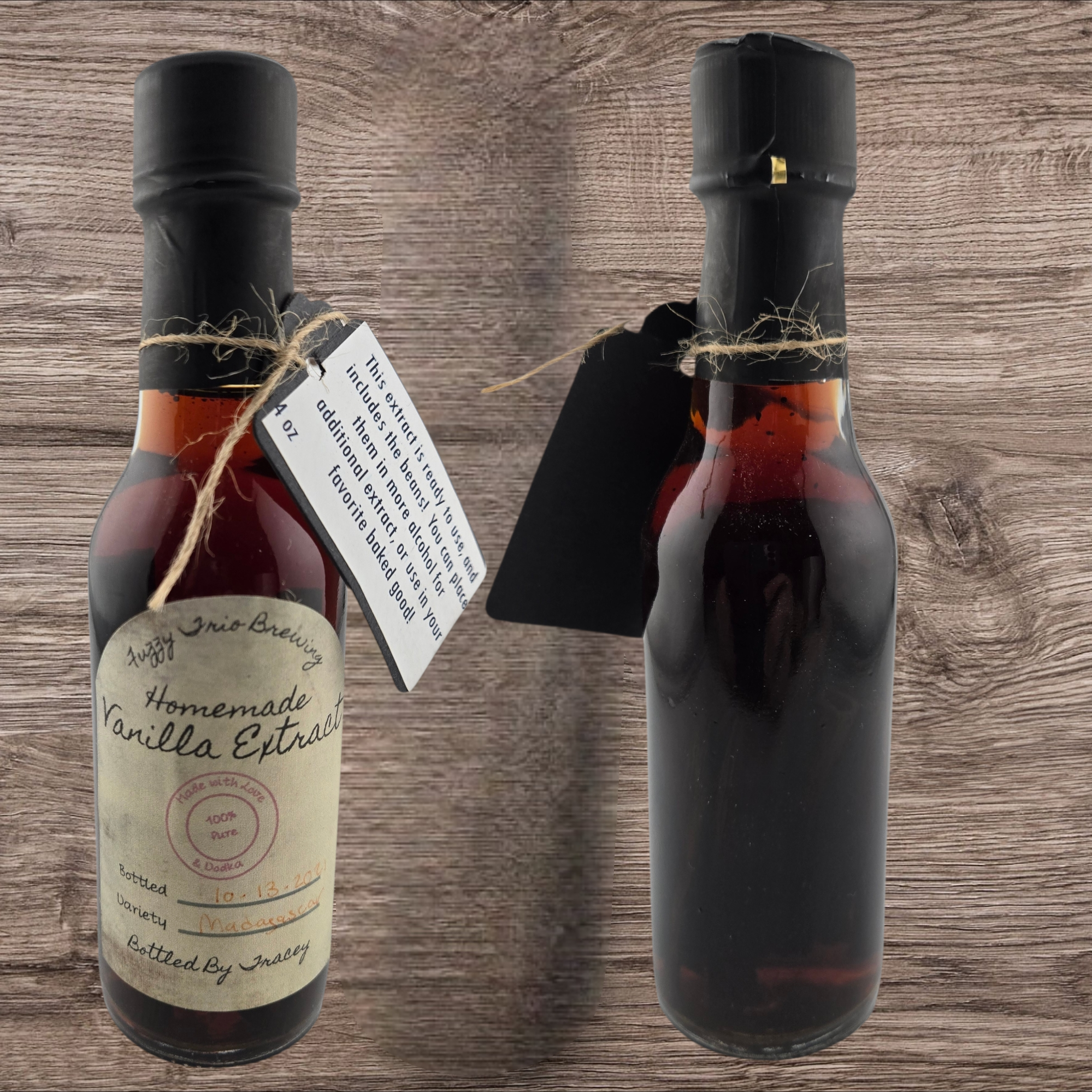 This Grade A Madagascar Bourbon vanilla extract has been slowly brewing for four years, resulting in a rich, smooth, and deeply aromatic flavor. Made by hand in small batches, it delivers classic vanilla warmth with exceptional depth and balance. The bottle also includes the beans, giving you the freedom to add more alcohol and let it extract again.