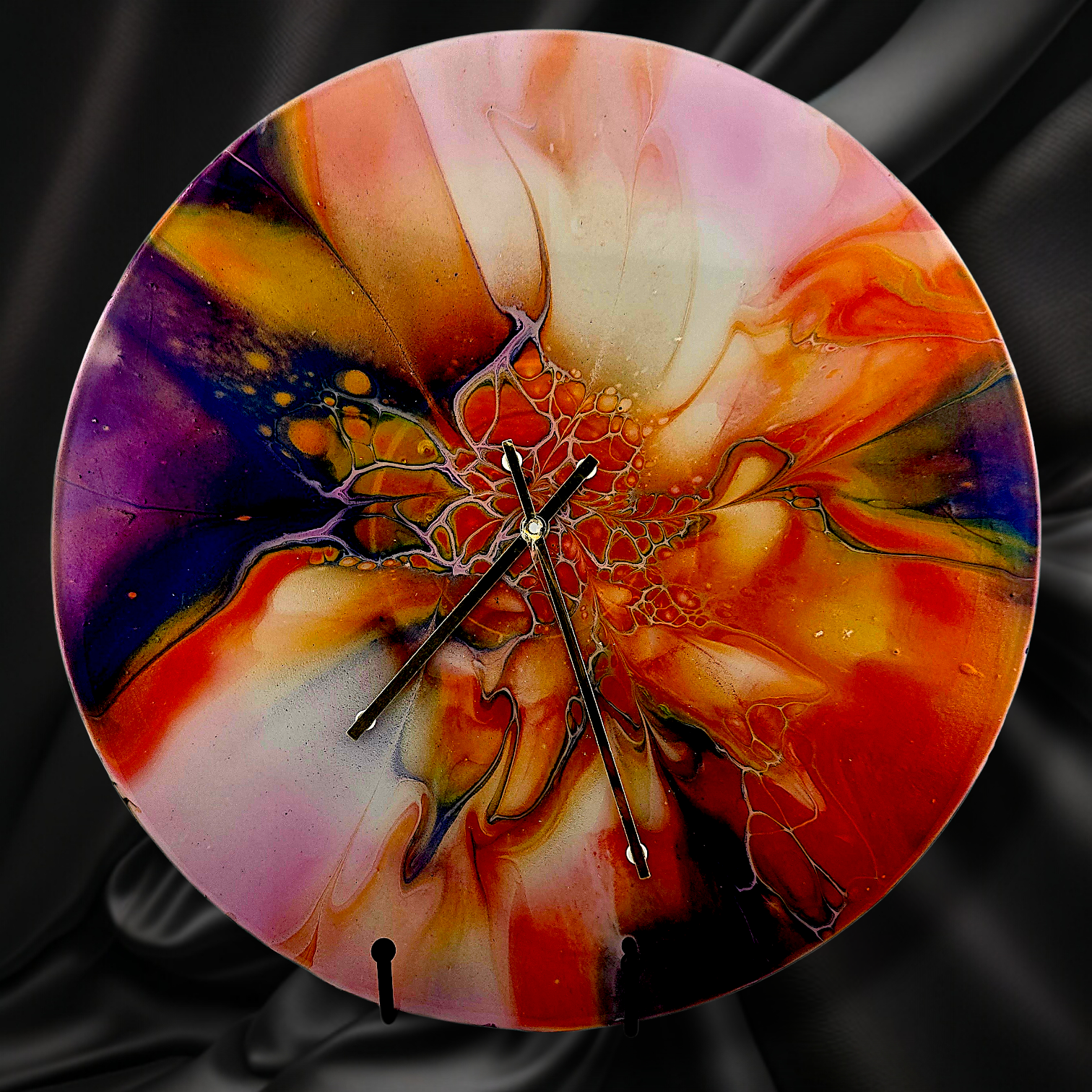 This one-of-a-kind wall clock is handpainted on a 12" vinyl record, turning a classic material into a functional piece of art. Each clock is painted by hand, making every design unique in color, pattern, and personality.