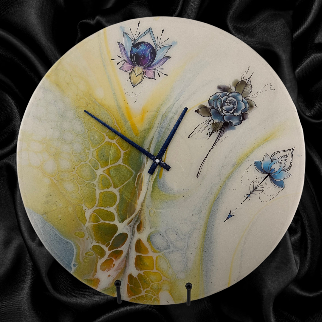 This one-of-a-kind wall clock is handpainted on a 12" vinyl record, turning a classic material into a functional piece of art. Each clock is painted by hand, making every design unique in color, pattern, and personality.