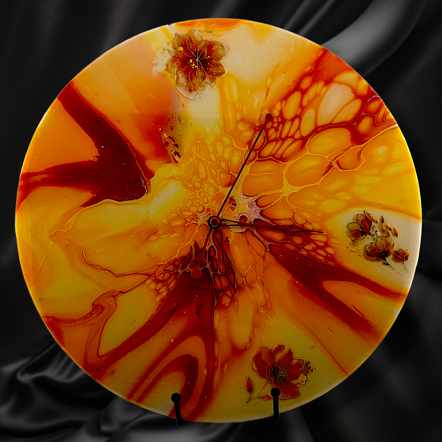This one-of-a-kind wall clock is handpainted on a 12" vinyl record, turning a classic material into a functional piece of art. Each clock is painted by hand, making every design unique in color, pattern, and personality.
